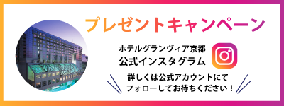 | ホテルグランヴィア京都 公式インスタグラムにて、ペア宿泊券やレストラン招待券が当たる キャンペーンを実施します。 詳しくはインスタグラムの投稿にて!フォローしてお待ちください♪ |