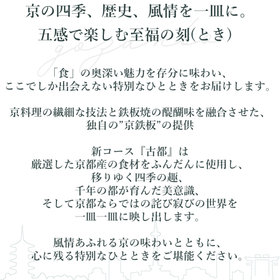 | 先付 | ~ 古都の幕開け ~ 京の肉 柚子胡椒 実山椒 白味噌 |