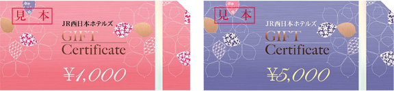 | ■ JR西日本ホテルズ ギフトチケット ご宿泊・ご宴会の他、レストランやショップでご利用いただけるギフトチケットです。 ¥1,000・¥5,000 2種類をご用意 |