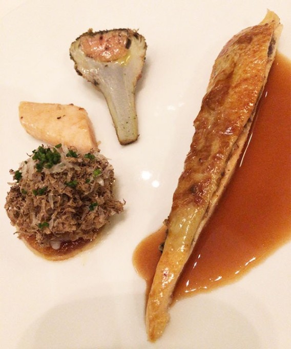 | メイン | プーレ(鶏)の胸肉にトリュフのデュクセルを挟みロティ 半熟の黄身にサマートリュフのラペ アーティチョークとフォアグラ ソースヴォライユ |