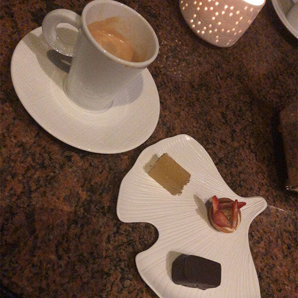 最後はバーへ移動。カフェと小菓子をいただき、お腹も心も満たされた時間を堪能しました。