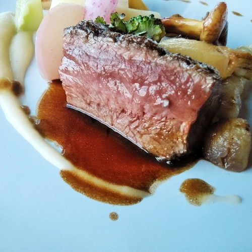| 肉料理 | 鹿ロースのロティ キノコのパート 季節野菜 そのジュのソース |