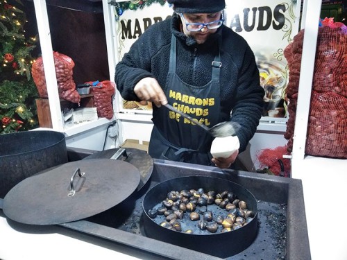 冬になると街角のあちこちで見かける屋台の焼き栗屋さんのことで、栗を焼くいい香りにつられてつい買ってしまう熱々の焼き栗は、フランス人定番のおやつです。