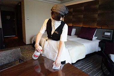 | ・ | ホテル館内は、従来の清掃に加え、不特定多数の人による接触機会の高い場所(エレベーターボタン、トイレ、ドアノブ、テレビや空調のリモコン、テーブル、椅子等)は、定期的に消毒を実施しております。 |