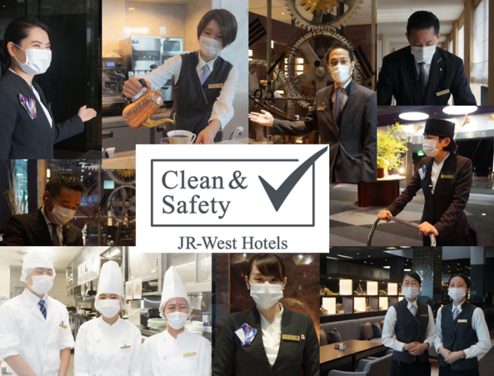 | JR西日本ホテルズでは、お客様と従業員の安全を第一に鑑み、独自の衛生基準「Clean & Safety」を策定し、遵守しております。 私たちは、お客様が、より快適に、安心してご滞在いただける上質な旅の基点となるために、妥協のない清潔さと、衛生的な環境づくりに努めております。 |