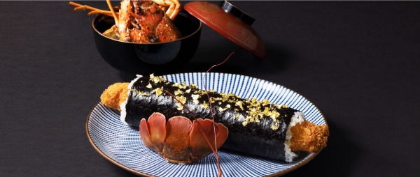 伊勢海老フライ1本を使用したボリューム満点な恵方巻は、金箔をあしらい、見た目にも華やかな逸品。