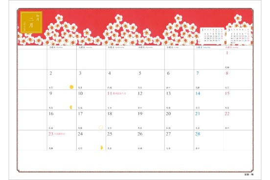 旧暦や、六曜、二十四節気なども記載されています。