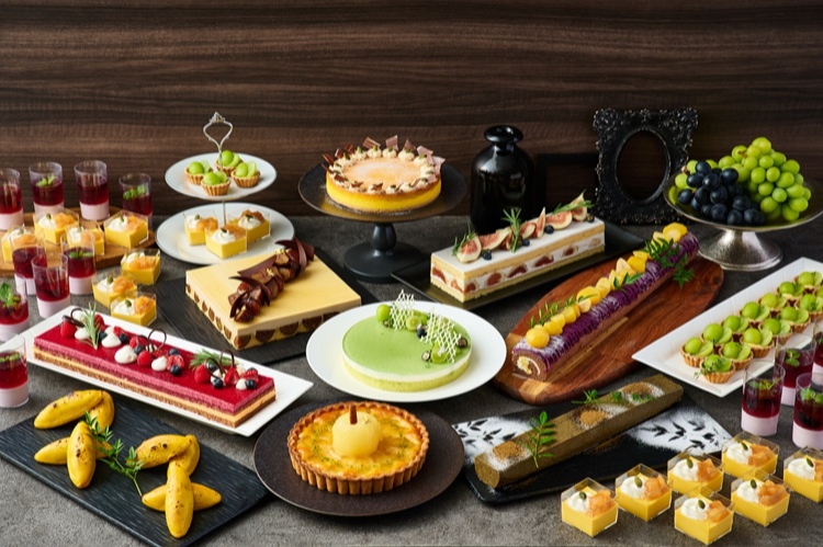 マスカットのプチタルトやイチジクのショートなど、秋の味覚が楽しめる「オータムスイーツバイキング~実りの収穫祭~」を開催中!目の前で絞って提供する京都産丹波栗のモンブランや、京都の老舗・丸久小山園のほうじ茶を使った テリーヌショコラといった、京都の食材を使ったメニューも!