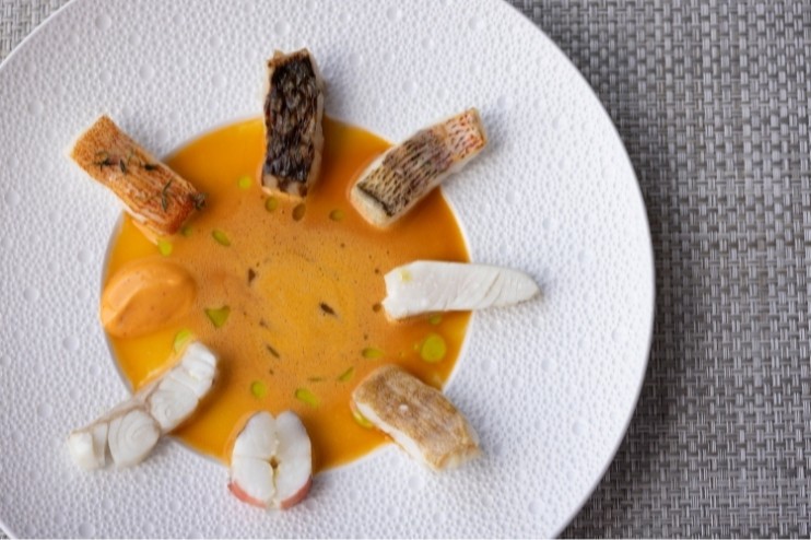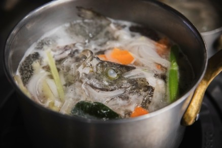 ブイヨンスープは魚の骨や頭からとった出汁を丁寧にこし、味付けは塩のみ。新鮮な魚のアラだからこそ、シンプルな味付けで美味しいスープに仕上げることができるのです。