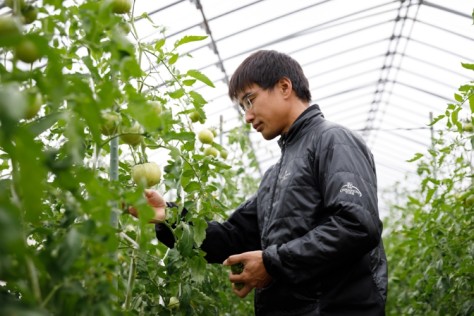 大学院で物理学の研究に励んでいた大江陽介さん。毎年試行錯誤をしながら、旨みのあるトマトが実る栽培方法を探っています。