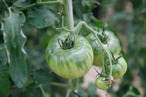 「ヘタの縁に濃い緑が出ているトマトの方が美味しい」と大江さん。薄く赤色になってきたら収穫し、3・4日追熟するときれいな赤色に。完熟でとるよりも旨みが強くなるそう。