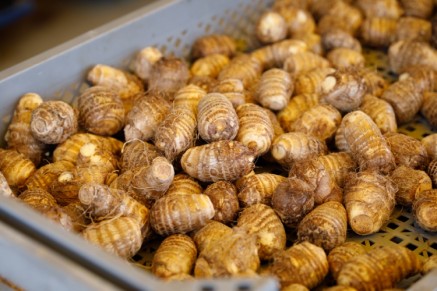 まいこ里芋は泥臭さがなく、しっとりとした口当たりで、皮が薄くてむきやすく、煮崩れしないため料理に使いやすいと喜ばれます。