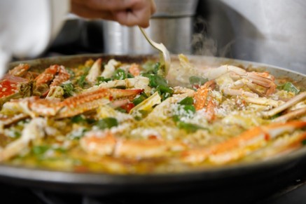 パエリアパンを持ったサービススタッフがお客様の席へ行くと、撮影大会がスタート。