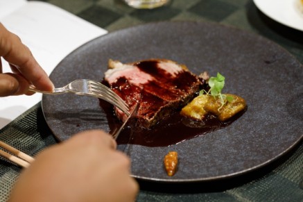 赤ワインを煮詰めたソースをかけ、『おのじん』の醤油糀を添えてお出しすることで、脂がのった京たんくろ牛をさっぱりと仕上げました。
