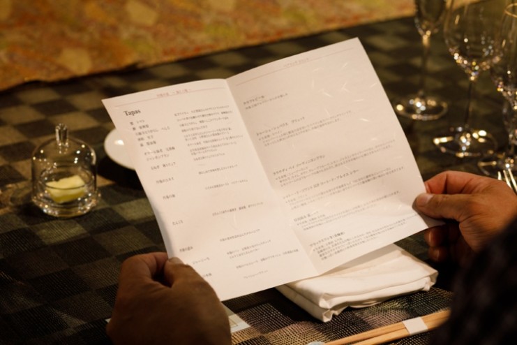 お客様のお席には本日のメニューを用意。使用する京丹後の食材や生産者のご紹介も掲載しました。