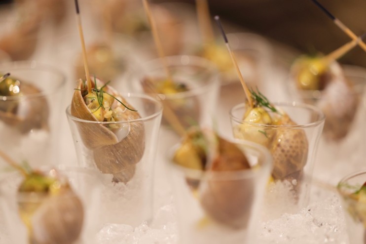 アペリティフに用意された、バイ貝のディルマヨネーズ和え。