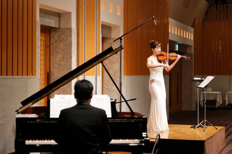 ワールドツアーなど国際的な演奏活動をされている「エリカ」さんの生演奏でクラシックの名曲が奏でられると、会場は一層上質な空間に。