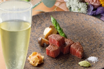 極上の黒毛和牛や旬の海の幸を、熟練シェフの技とともに味わえる、五感で楽しむ贅沢な時間をお届けします。