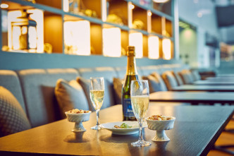 ロビーに隣接し、ガラス越しには京都駅も見える開放的でゆったりとしたスペース。