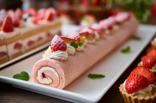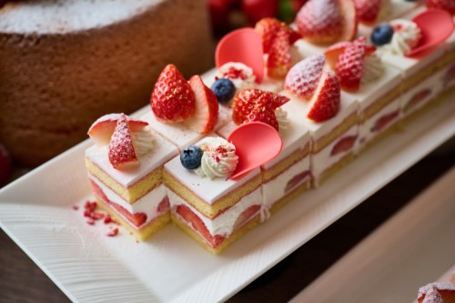 定番のショートケーキやムース、プチタルト、シフォンケーキなど苺をふんだんに使ったスイーツが食べ放題!