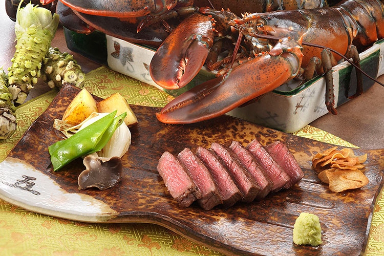 | 「国産活伊勢海老」と「活鮑」「銘柄牛」の鉄板焼のコース | |