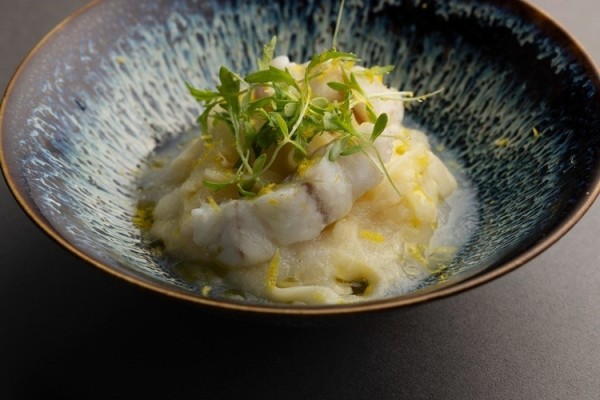 | < パスタ> タリアテッレ 魚介と聖護院蕪の優しいアーリオ・オーリオ 柚子の香り |