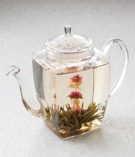テーブルを華やかに彩る 工芸花茶 を飾りガラスポットでサービス