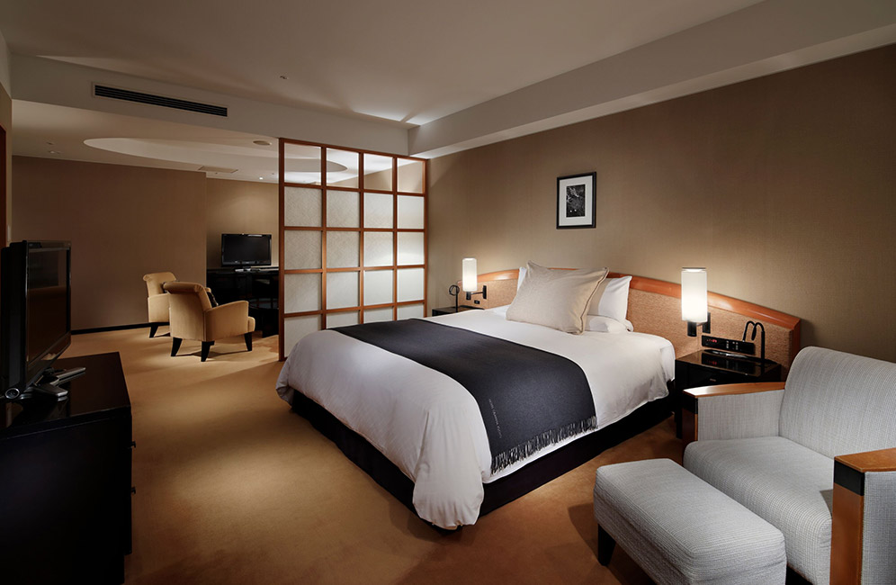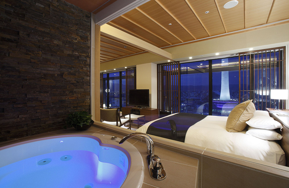 ラグジュアリーな客室から京都の町並みを眺めつつ、