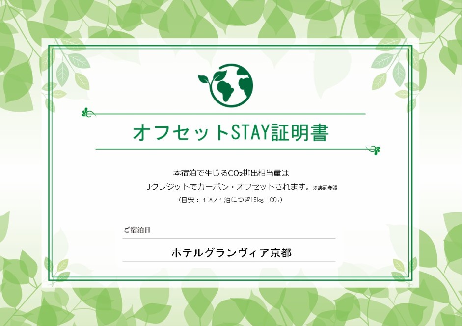 ※おひとりさま 1泊あたり15kgのCO2がオフセットされます。