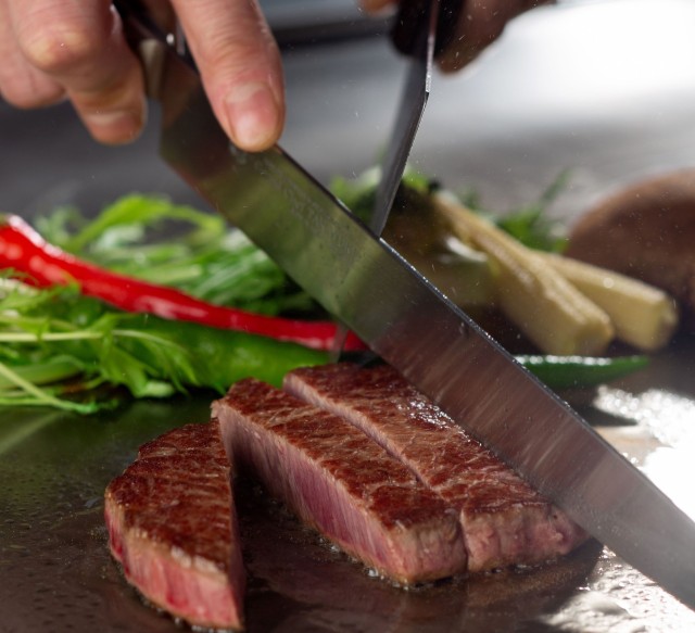 ・特選黒毛和牛フィレ肉(80g)の鉄板焼き 山葵 ガーリックチップ